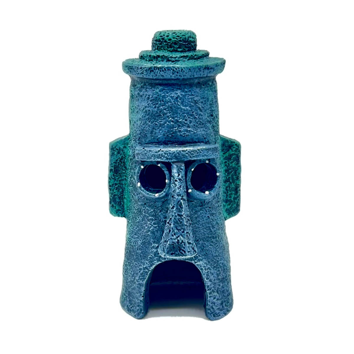 Enfeite de resina atóxica reproduzindo a casa do Lula Molusco. Peça com ricos detalhes de forma e pintura para ornamentação de aquários e terrários.