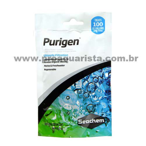 Seachem Purigen é uma mídia filtrante adsorvente diferente de qualquer outro produtos filtrante, pois consiste em um polímero sintético macro-poroso único que remove as impurezas da água com uma capacidade de até 500% a mais que outros tipos de mídias. Purigen diminui a amônia, nitridos e nitratos removendo o nitrogênio orgânico que resulta nesses compostos, ao mesmo tempo que seu impacto nos elementos traços é mínimo. O resultado final é uma água cristalina e livre de impurezas.