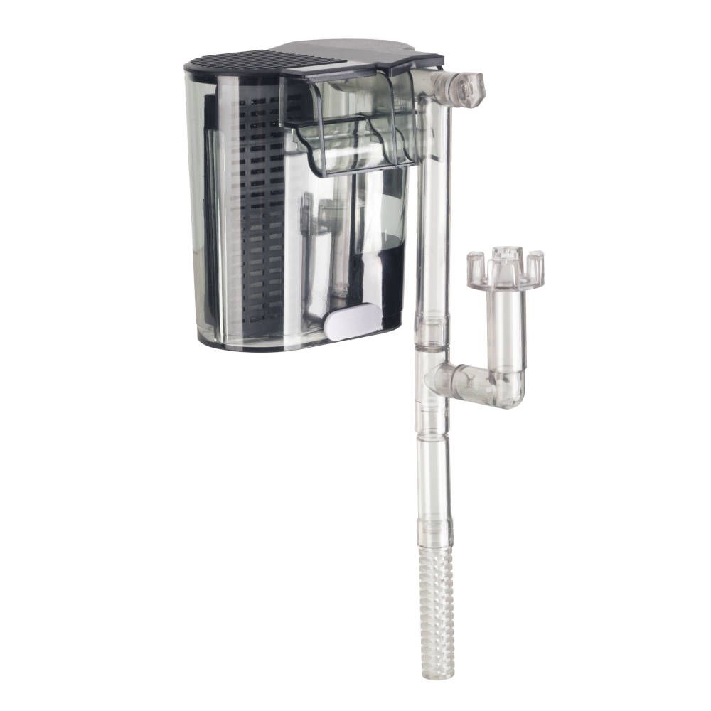 Filtro externo hang-on de até 450L/H com regulagem de fluxo e extrator de superfície, para aquários de até 60 litros com poucos peixes ou 30 litros com muitos peixes. Acompanha esponja e perlon para filtragem mecânica e biológica.