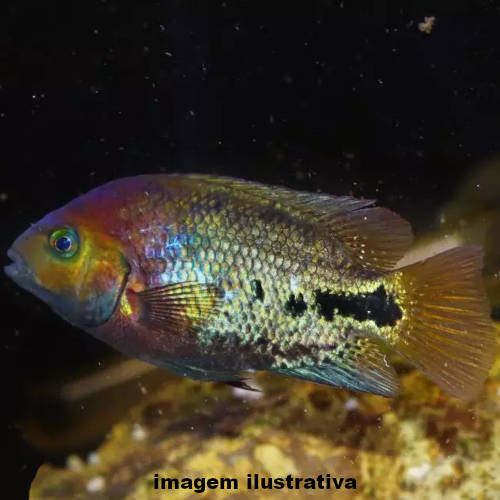 Comportamento: Pode ser agressivo com outros da mesma espécie ou ciclídeos de porte parecido, porém se o aquário tiver bastante espaço a convivência é possível sem grandes problemas, desde que mantido com peixes de porte e comportamento similares.